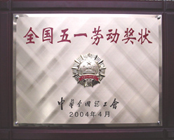 2004年4月29日,江蘇省總工會在南京召開紀(jì)念“五一”國際勞動(dòng)節(jié)大會,會上,省委領(lǐng)導(dǎo)向王勇董事長頒發(fā)了“全國五一勞動(dòng)獎(jiǎng)狀”獎(jiǎng)牌。