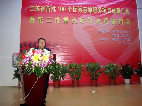 12月3日,由共青團(tuán)江蘇省委、江蘇省志愿者協(xié)會(huì)主辦、中國(guó)藥科大學(xué)團(tuán)委承辦,南京圣和投資集團(tuán)贊助的江蘇省首批100個(gè)優(yōu)秀志愿服務(wù)項(xiàng)目成果匯報(bào)暨第二批重點(diǎn)項(xiàng)目立項(xiàng)答辯會(huì)在中國(guó)藥科大學(xué)報(bào)告廳舉行。團(tuán)省委書(shū)記練月琴同志出席會(huì)議并講話。