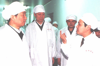 二○○三年“五一”節(jié)當(dāng)天,省委書記李源潮在南京市委書記羅志軍的陪同下,上午十點(diǎn)三十分來(lái)到我公司新港生產(chǎn)基地了解生產(chǎn)抗”非典“藥物生產(chǎn)情況,看望并慰問(wèn)奮戰(zhàn)在一線的員工,代表省委、省政府對(duì)本公司員工在勞動(dòng)者的節(jié)日、非常時(shí)期堅(jiān)守崗位,加班加點(diǎn),保證防治非典藥物的生產(chǎn)供應(yīng)表示感謝,并向全省工人階級(jí)和所有勞動(dòng)者致以節(jié)日的問(wèn)候。
