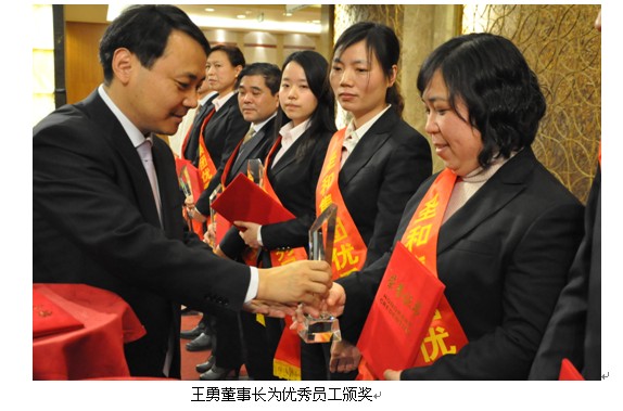 會上對2011年度先進(jìn)個人和集體進(jìn)行表彰,并舉行了隆重的頒獎儀式。徐立軍等17人被授予“優(yōu)秀員工”稱號,朱正偉等34人被授予“先進(jìn)員工”稱號,北京二區(qū)等10個辦事處被授予“優(yōu)秀辦事處”稱號,趙永麗等16人被授予“銷售能手”稱號,馬艷等36人被授予“優(yōu)秀代表”稱號,蔡翠等19人被授予“企業(yè)文化建設(shè)先進(jìn)個人”稱號。